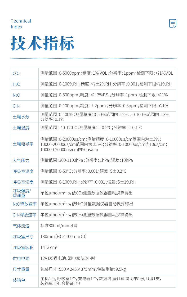 土壤呼吸作用測定儀能實時顯示呼吸室內部CO?、H?O、溫度和大氣壓力的變化,廣泛應用于農業生態科研、碳源碳匯研究、全球氣候變化、土地利用變化、生態修復、土壤微生物活力評估、植物生態研究、昆蟲與根系呼吸研究以及水果貯藏等領域。
